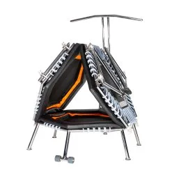 Las superficies de salto laterales se pueden plegar mediante un sencillo mecanismo. El asidero de altura regulable se puede desmontar del bastidor según la necesidad y el método de entrenamiento.