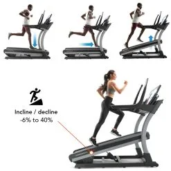 Con la Cinta de Correr NordicTrack Incline Trainer X32i vivirás el entrenamiento en consola con una pantalla táctil de 32 pulgadas. Además, la función de inclinación de hasta el 40% y la declinación de hasta el -6% ofrecen unas posibilidades de entrenamiento insuperables.