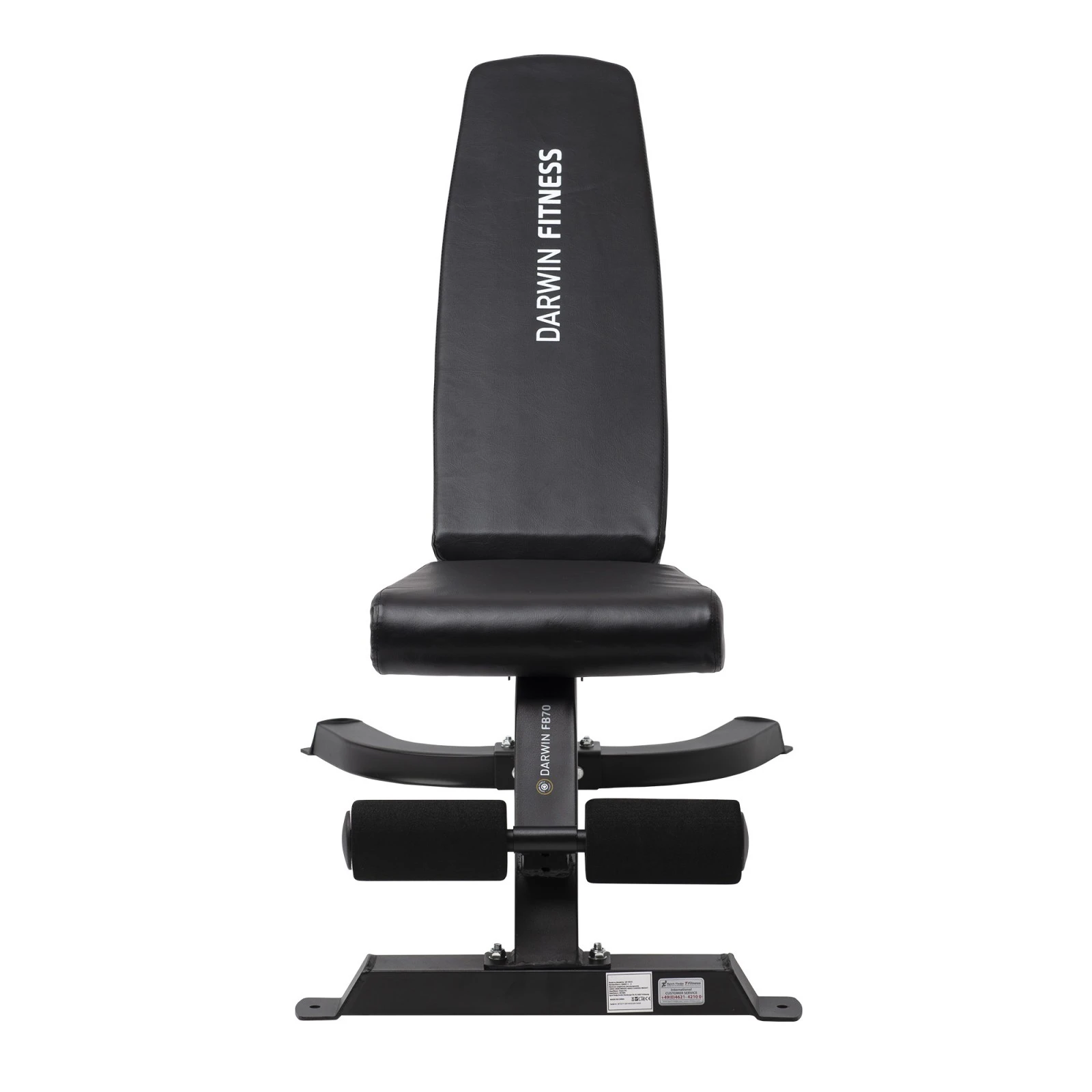 El entrenamiento libre con pesas es el camino efectivo y variado hacia el mantenimiento muscular. Un banco de entrenamiento como el Banco de Musculación Darwin FB70 te ayudará a conseguirlo. El banco de musculación de Darwin es estable y cuenta con un cómodo acolchado. Es posible ajustar el respaldo en 7 posiciones. Entre otras, se puede colocar en plano, en negativo y también prácticamente en vertical. La altura del asiento es de 44 cm. En la parte delantera cuenta con rodillos acolchados, donde podrás enganchar tus pies. Esto aporta mayor estabilidad y da apoyo a la hora de hacer abdominales.