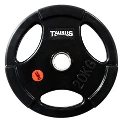 Los discos de peso tienen un núcleo de acero y están recubiertos de una goma de alta calidad resistente al efecto de roce. Esto protege el suelo, su equipamiento y las placas de peso de posibles arañazos o abolladuras. Además, esto hace que los discos de peso sean mucho más silenciosos. Aunque es muy resistente, el disco de peso 3G de Taurus debe ser colocado de forma moderada, a fin de evitar un desgaste innecesario del material.