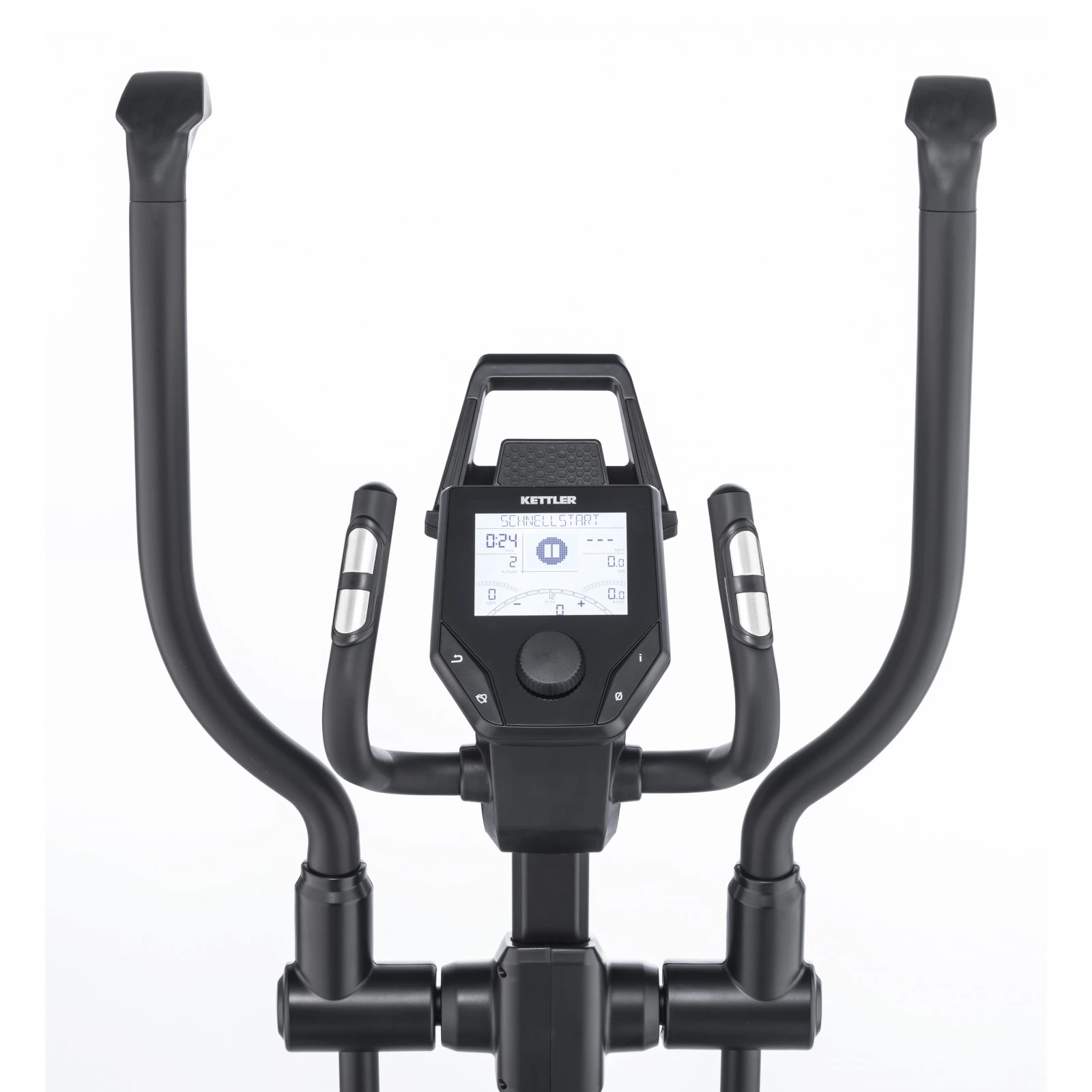 En comparación con OPTIMA 100, la Elíptica Kettler Optima 200 tiene una mayor longitud de zancada y, por lo tanto, completa una elipsis más agradable. Con una masa de inercia de 14 kg, la rotación es suave y proporciona una buena sensación de carrera. Gracias a las superficies de apoyo ajustables, puedes adaptar individualmente la posición de carrera según tus necesidades y sensaciones para, de esa forma, encontrar la posición óptima de pies y piernas.