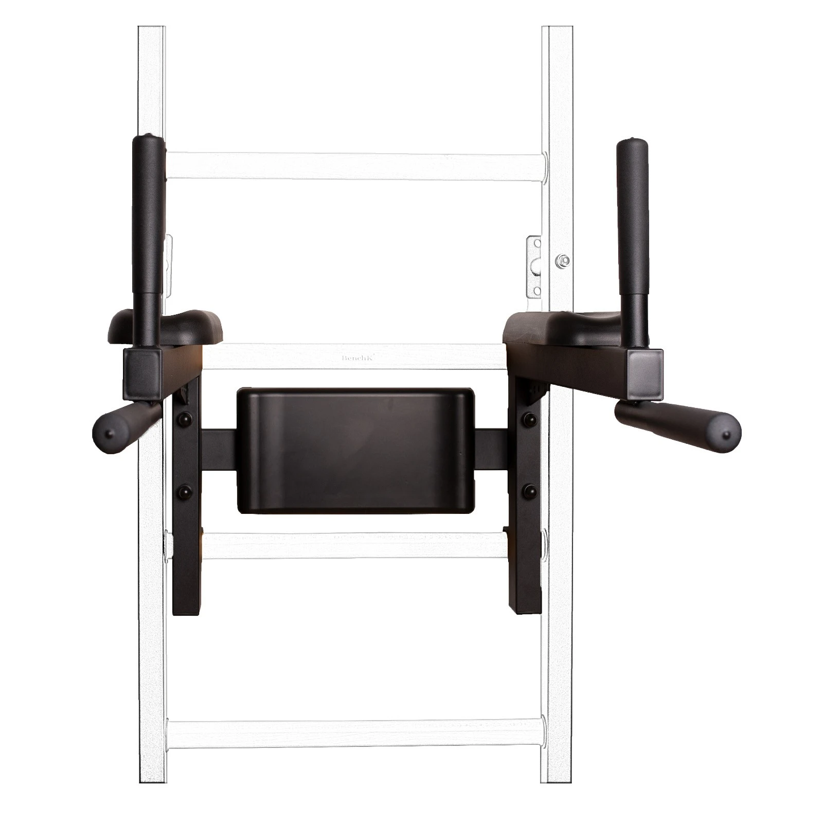 La Estaci贸n de Dominadas BenchK BenchK DB1B Negro Dip-Station permite transformar f谩cilmente la espaldera compacta en un aparato de entrenamiento vers谩til y variado. Tras un entrenamiento satisfactorio, tienes la opci贸n de colocar de manera compacta la estaci贸n de dominadas en la espaldera o separarla f谩cilmente mediante los ganchos, que est谩n protegidos con fieltro.