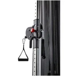 Ambas poleas/cables se pueden girar 180潞. Con ello se aprovecha todo el espacio de movimiento en cada ejercicio. De esta manera los m煤sculos se entrenan con una gu铆a de movimiento y la efectividad del entrenamiento es m谩xima. El m贸dulo de poleas tambi茅n se puede ajustar en altura, con 32 posiciones: por lo tanto, es posible realizar ejercicios sentado, al igual que por encima de la cabeza, hacer curls de b铆ceps en pie o realizar un entrenamiento de tr铆ceps.