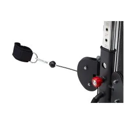 La estaci贸n de poleas viene con dos manerales, para que as铆 puedas realizar ejercicios con una mano o con ambas manos (p.ej. mariposa). Ya que los manerales est谩n equipados con mosquetones, se pueden emplear otros agarres o accesorios. De esta forma, podr谩s entrenar de manera muy efectiva la musculatura de la espalda mediante unos mangos paralelos, realizando movimientos de remo. Con una cuerda de tr铆ceps podr谩s fortalecer de manera efectiva tanto b铆ceps como tr铆ceps. El equipamiento con mosquetones tiene una ventaja m谩s: ambas poleas se pueden conectar entre s铆. As铆 la resistencia se multiplicar谩 por dos.