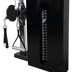 Esta polea para fijar a la pared es especialmente fina. La parte delantera de esta estaci贸n de entrenamiento sobresale apenas 30 cm de la pared. Por lo tanto, este dise帽o ultrafino pr谩cticamente no ocupa espacio en la sala de ejercicio.