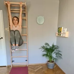El juego consta de la espaldera de madera de haya, una barra de dominadas desmontable de madera de haya, el BenchTop (escritorio), anillas de gimnasia de madera y una cuerda de algodón para escalada con columpio. El Juego de Espalderas BenchK 112+A204 ofrece mucha variedad en estiramientos, ejercicios gimnásticos y entrenamiento de fuerza. Aquí, la espaldera también se puede complementar opcionalmente con bandas de fisioterapia o sistemas de entrenamiento en suspensión para realizar más ejercicios.