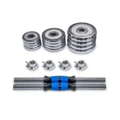 Podr谩s variar libremente los pesos, siempre que los discos cuenten con un orificio de 50 mm. El moleteado medio de los agarres te brindar谩 apoyo durante el entrenamiento y te ayudar谩 a realizar los ejercicios de forma controlada.