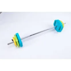 El set de barra otorga a un entrenamiento en grupo compacto la intensidad adecuada para el fortalecimiento de todo el cuerpo.. Esto se debe a los 3 discos de distintos pesos, que se pueden ajustar a cada nivel de entrenamiento. Mediante los cierres r谩pidos, el cambio de los discos se realiza en cuesti贸n de segundos. El recubrimiento de los discos permite un uso del set silencioso y respetuoso con el suelo durante el entrenamiento. Las distintas opciones de agarre que ofrecen los discos permiten una carga y descarga r谩pida y sencilla de la barra.