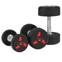 隆El hierro es la mejor medicina! Y la Mancuerna Taurus TPU te la ofrece en las dosis exactas. Las pesas de acero est谩n revestidas de TPU. El llamado TPU es poliuretano termopl谩stico, un material sint茅tico de alta calidad particularmente duradero, resistente a la abrasi贸n y completamente inodoro. Las pesas est谩n disponibles en intervalos de peso de 2,5聽kg, 隆desde solo 2,5聽kg hasta 50聽kg! Puedes utilizarlas tanto en casa como en una clase de fitness profesional, e incluso en el gimnasio. Las pesas est谩n disponibles por separado, aunque tambi茅n ofrecemos packs con condiciones especiales. Nuestro equipo de atenci贸n al cliente estar谩 encantado de aconsejarte.