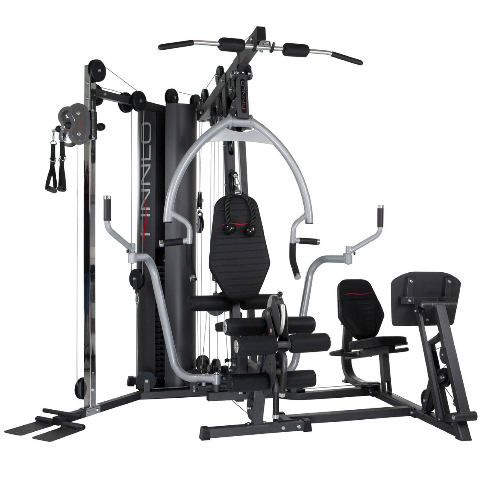 Equipada con un press de pecho, una polea al pecho y una unidad separada para mariposa, la Multiestaci贸n Autark 6800 de Finnlo le permite realizar un entrenamiento completo de toda la musculatura del tronco. El dispositivo para la flexi贸n de pierna (con funci贸n de doblado de las piernas) le ofrece todo lo necesario para entrenar la musculatura de sus piernas. Adem谩s de la flexi贸n de pierna de la estaci贸n base, en esta estaci贸n dispondr谩 de una prensa de pierna. Su placa de metal grande y estable garantiza un agarre seguro. El acolchado de la espalda se puede ajustar de forma individual y permite una ergonom铆a ideal durante el entrenamiento.