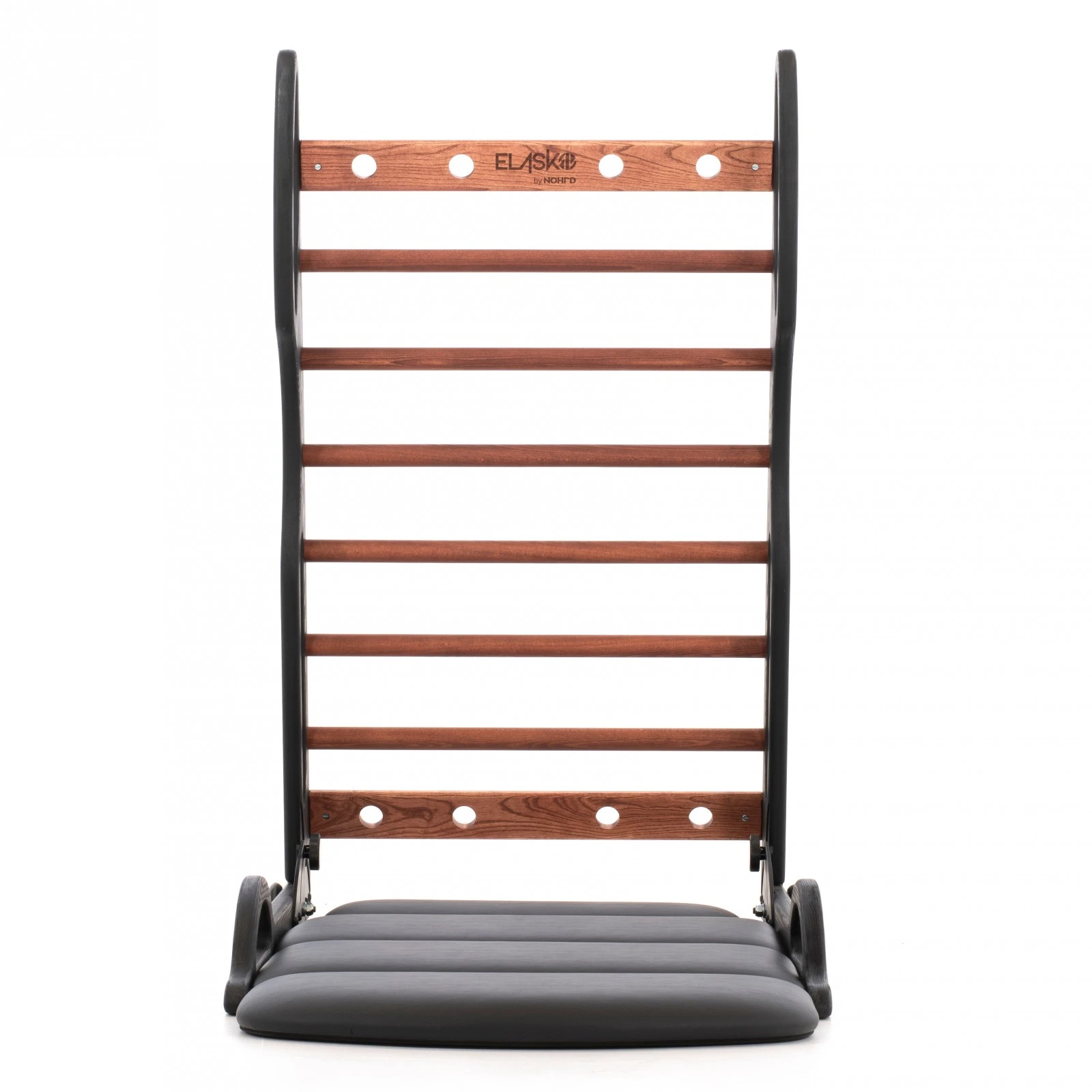 La estación NOHrD Elasko, fabricada en Alemania, convence, no sólo por su estética elegante con una combinación de madera noble y cuero, sino porque te ofrece también la posibilidad de mejorar tu flexibilidad, a la vez que realizas un exigente entrenamiento.