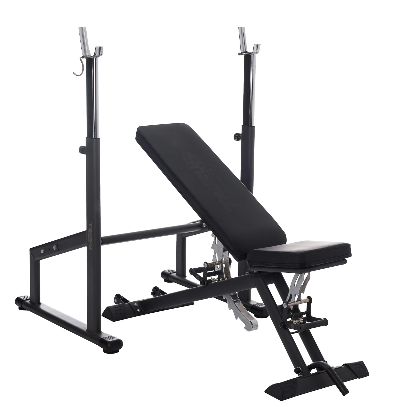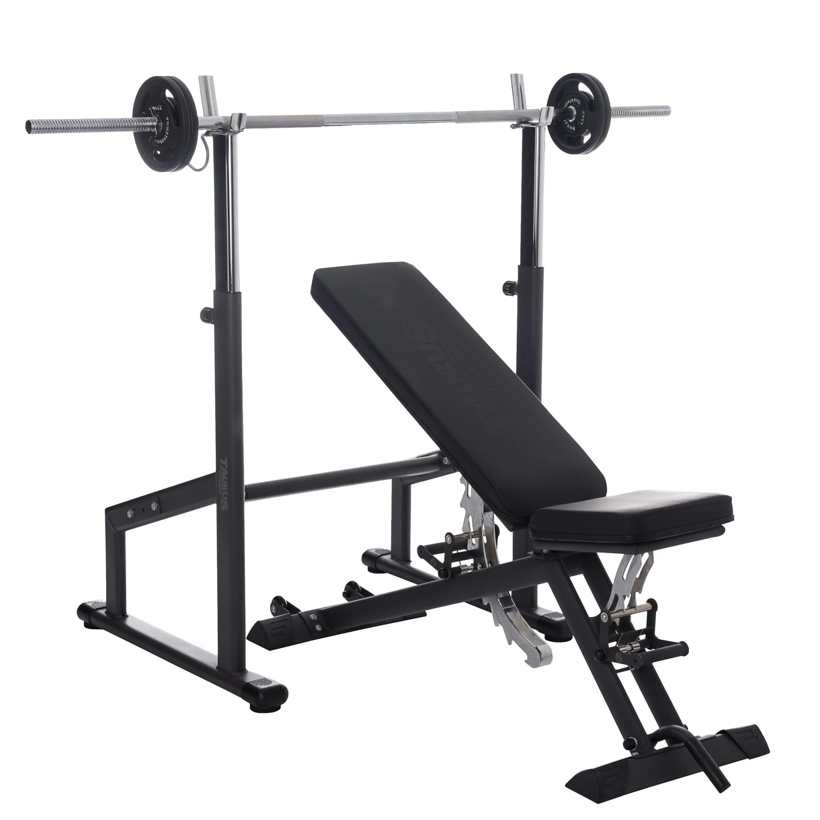Variable – confortable: el Set de entrenamiento con barra larga de Taurus con Banco y Rack