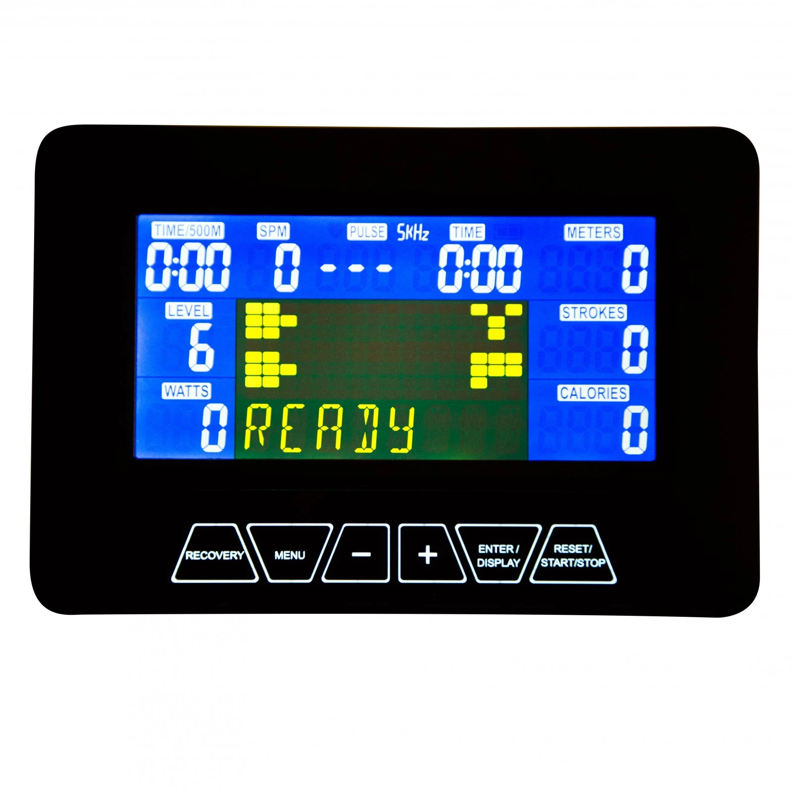 La combinación de resistencia por aire y y resistencia magnética, además de un golpe de remo regular, garantiza un movimiento uniforme y fluido durante el entrenamiento. Los diferentes niveles de potencia y los avances en el entrenamiento se pueden controlar mediante 16 niveles de resistencia. Con los 3 programas de entrenamiento por frecuencia cardíaca y una banda de pecho opcional también se pueden realizar entrenamientos cardiovasculares. La pantalla LCD de gran tamaño y fácil de usar te muestra todos los datos relevantes durante el entrenamiento.