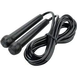- Cuerda de saltar con agarres de plástico para entrenar resistencia y calentar