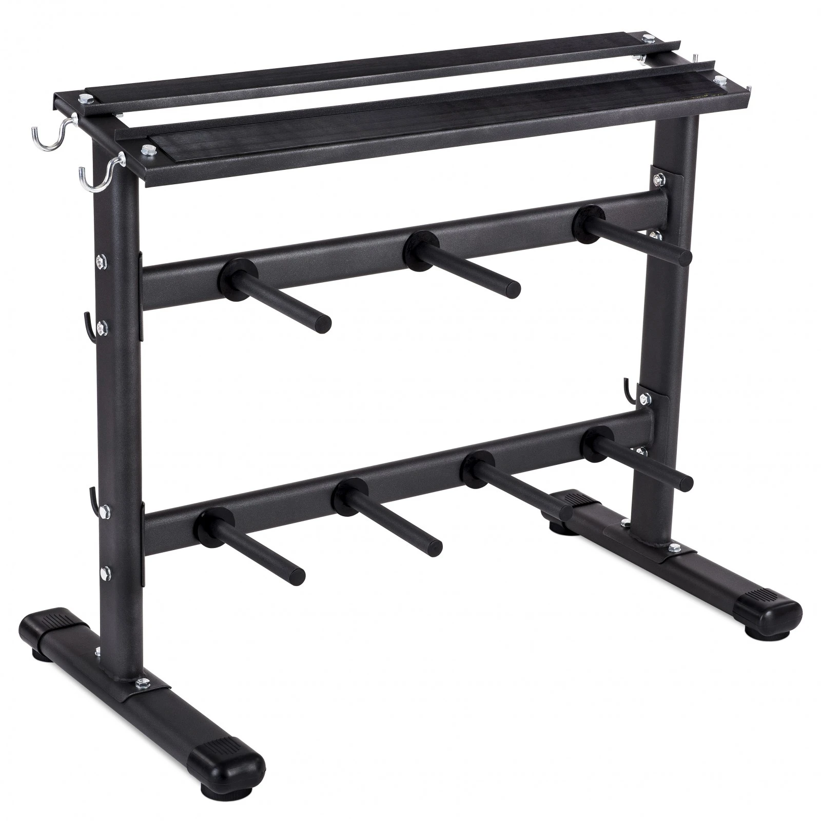 Ganchos para barras y accesorios: 10 kg cada uno - Longitud de los soportes para discos: 22cm