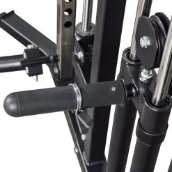 - Estación 2 – las Poleas: Dos poleas ajustables en altura, que pueden cargarse de forma individual con discos de peso de 50 mm